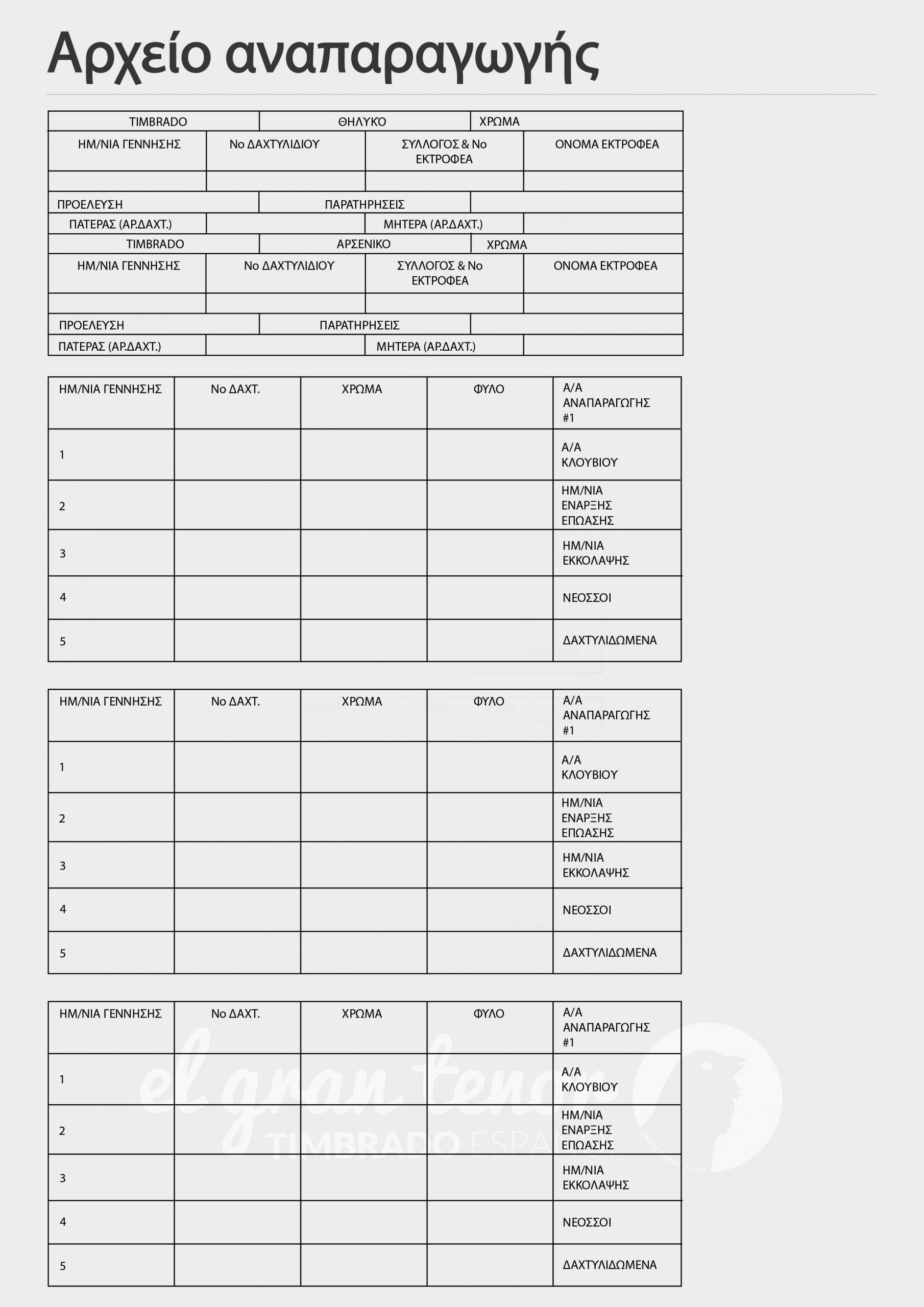 Ονομάζομαι Ζιάκος Τάσος ανήκω στnν Ελληνική Λέσχη Ισπανικού Τιμπράδο – Ε.Λ.Ι.T με κωδικό εκτροφέα ST 100.