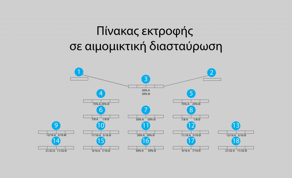 2ο Έτος: Επιλέγουμε δύο θηλυκά απο την 3η ομάδα και τα ζευγαρώνουμε με το αρχικό μας αρσενικό (1η ομάδα), με αυτόν τον τρόπο, μας προκύπτει η 4η ομάδα. Ζευγαρώνουμε το καλύτερο αρσενικό απο την 3η ομάδα με το αρχικό μας θηλυκό (2η ομάδα), με αυτόν τον τρόπο μας προκύπτει η 5η ομάδα.